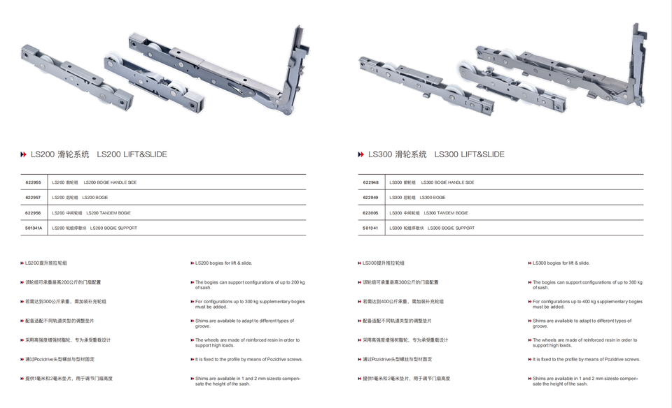 Système de rouleau de porte de levage et de glissière à usage intensif pour portes en aluminium-Capacité de 200kg-Résistant à la corrosion
