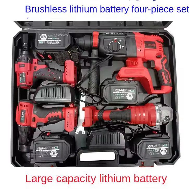 Ensemble d'outils électriques à batterie au lithium haute performance, kit de perceuse à percussion électrique 4 pièces, batterie rechargeable 4,0 Ah, entraînement 1/2 pouce