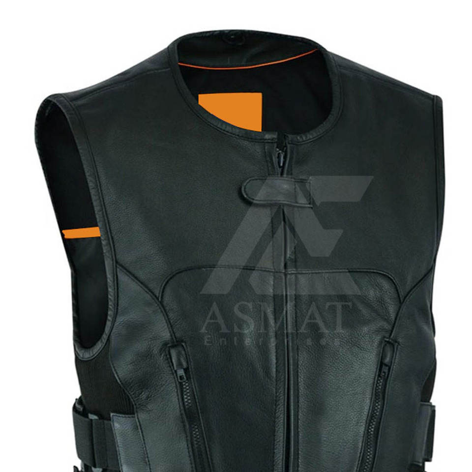 Gilet de moto robuste pour homme – Tendance et décontracté – Gilet en cuir sans manches pour motard