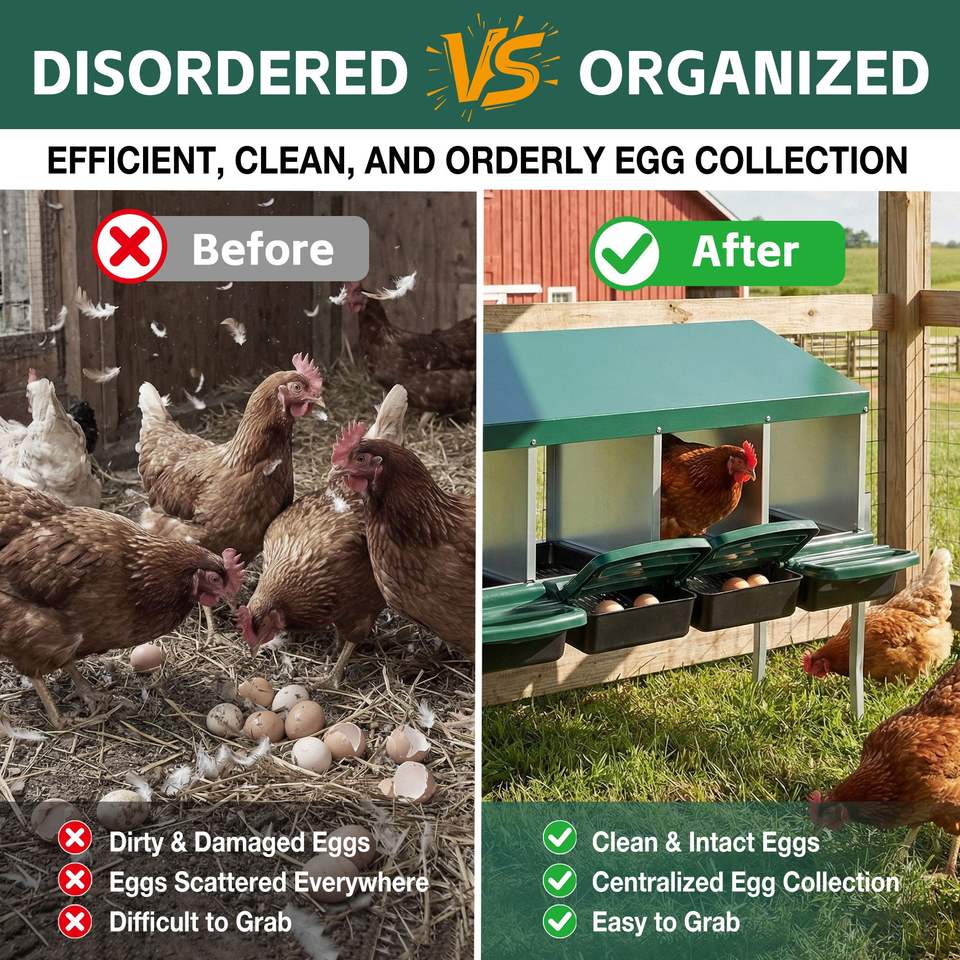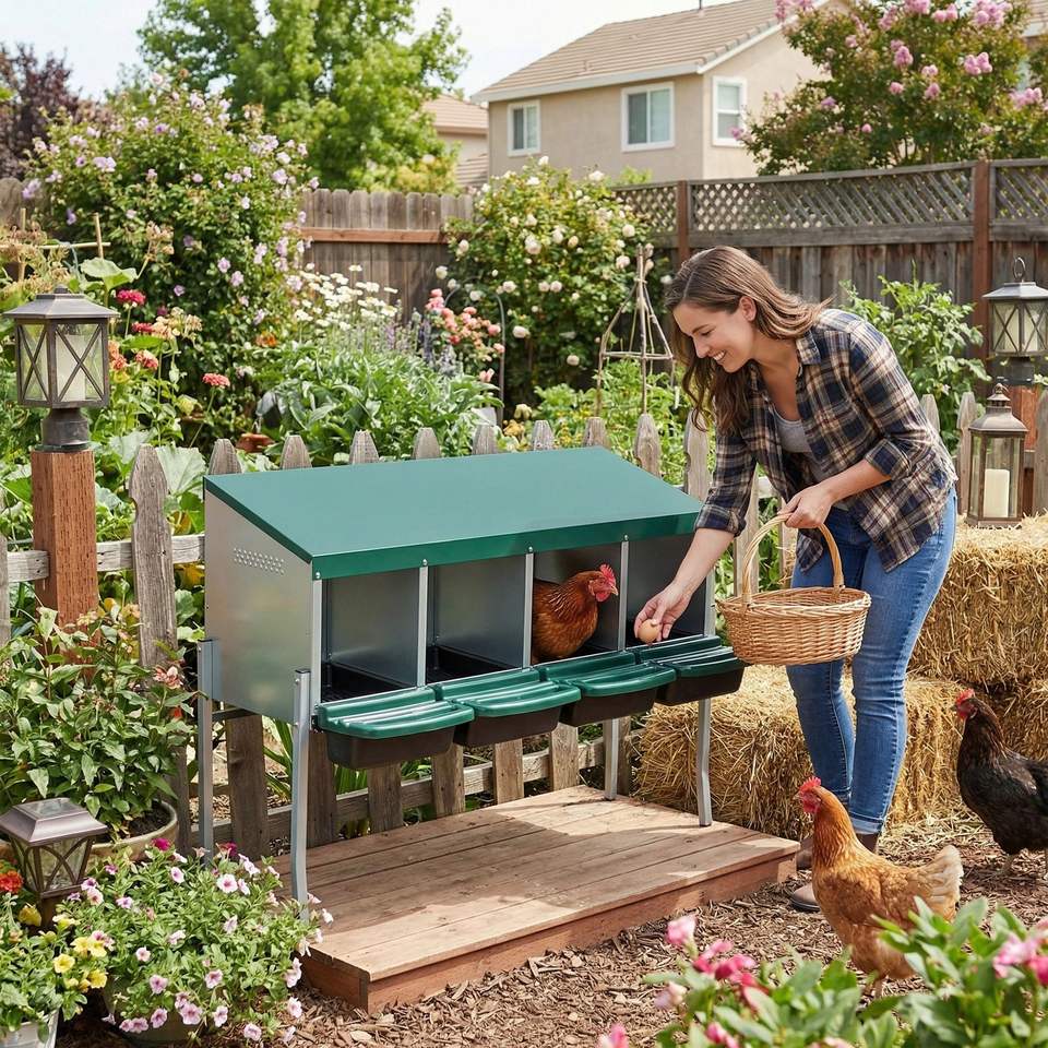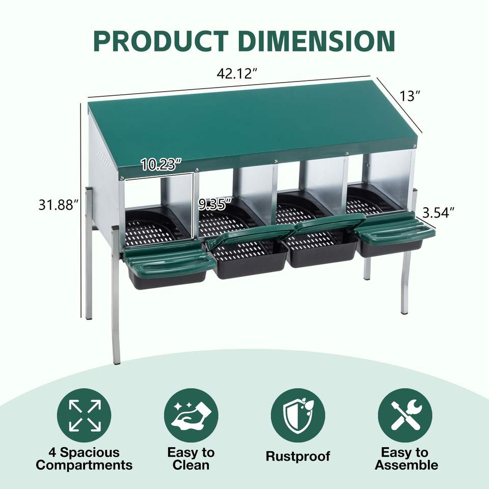 Nichoir à poules en métal robuste avec plateau amovible à 4 trous et 4 pieds pour la ponte des œufs