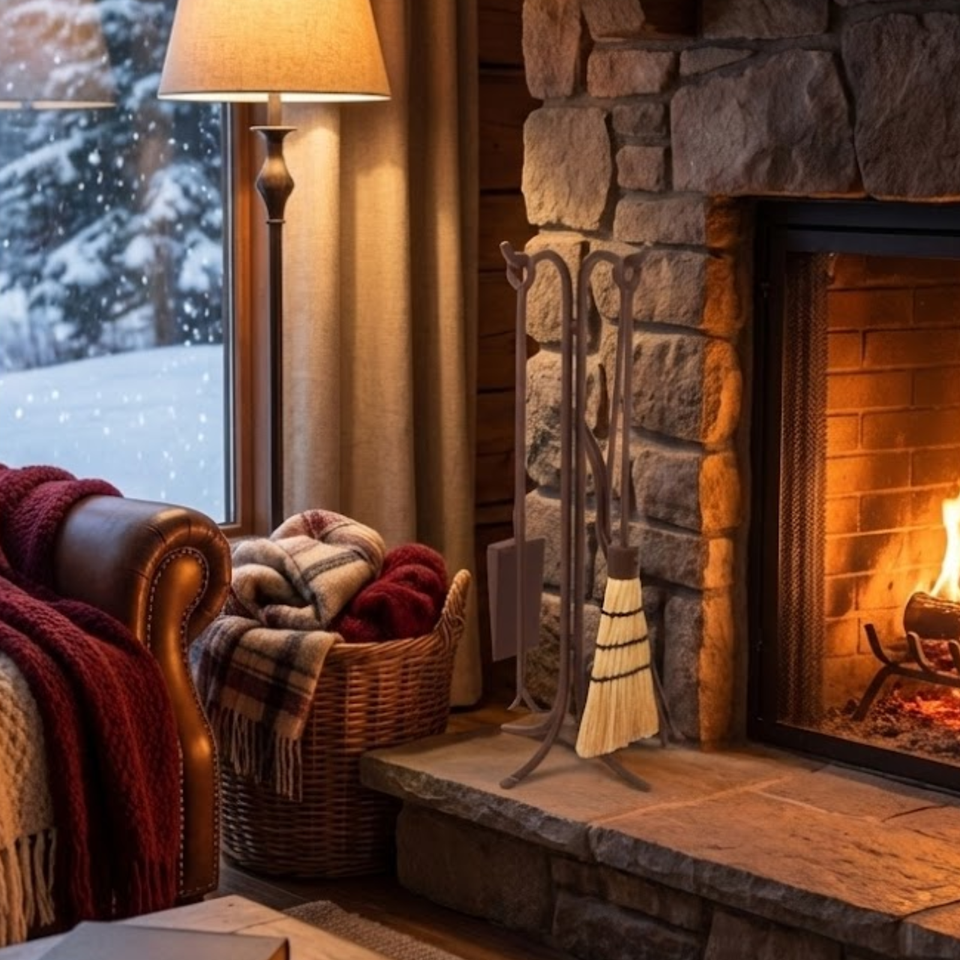Ensemble d'outils de cheminée en métal robuste | Comprend un support, une brosse, une pelle, un piqueur, des pinces | Outils d'entretien pour foyer de poêle à bois d'intérieur