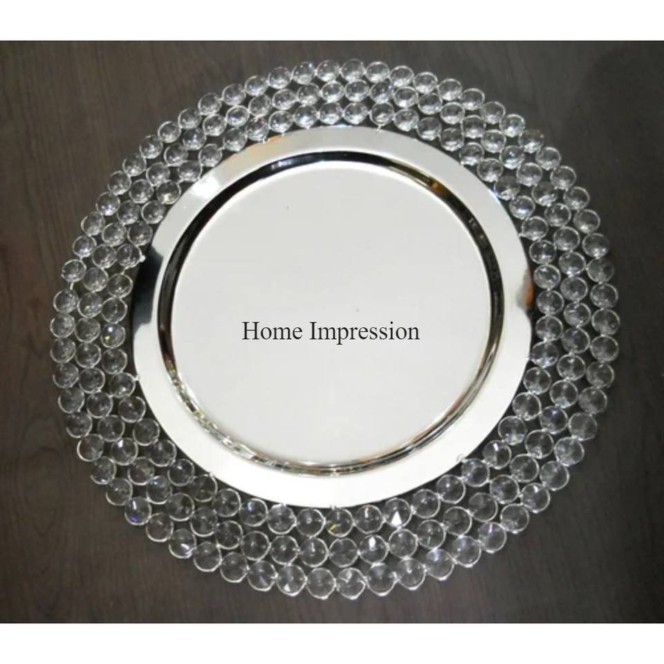 Heavy Duty Metal Gold Plated Round Shape With Clear Crystals Beaded Superior Quality Wedding Table Decoration Charger Plates