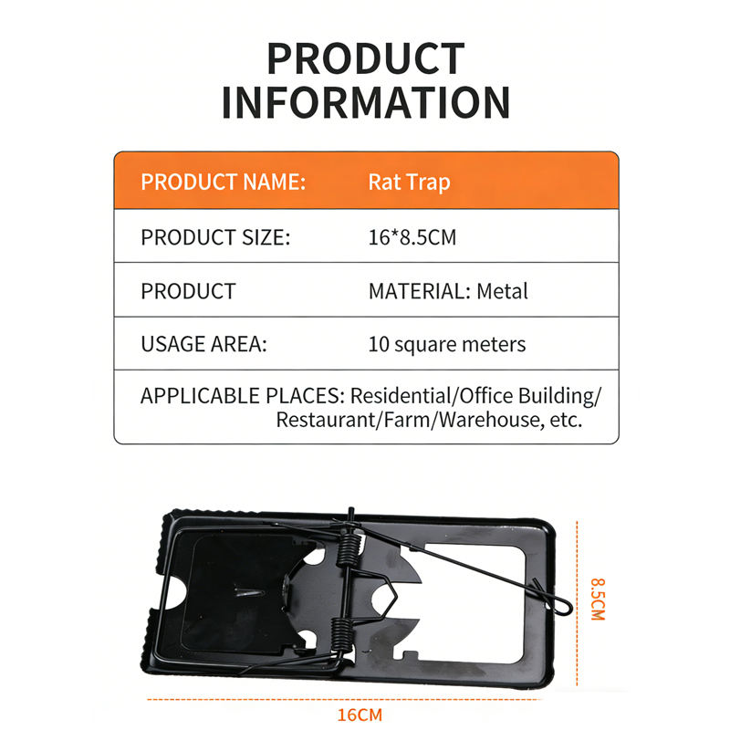 Piège à souris en métal robuste avec double ressort pour intérieur et extérieur, réutilisable, plaque en fer, attrape-rats, tueur de rongeurs