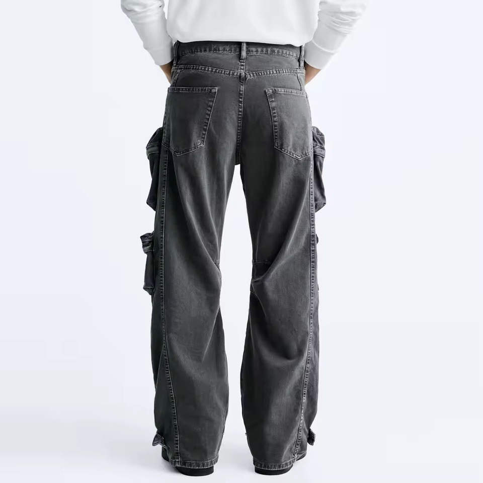 Jean cargo multi-poches robuste unisexe, coupe ample, style streetwear décontracté, mode hip-hop, pantalon large
