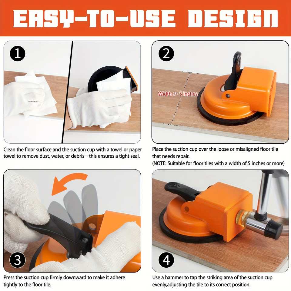 Ventouse robuste à poignée orange pour réparation de sols, construction métallique renforcée, sans électricité, pour bois, PVC, carrelage