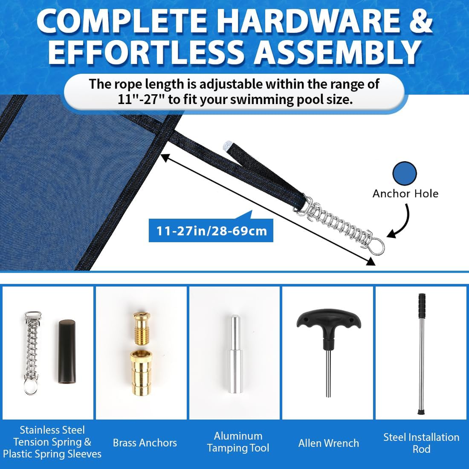 Couverture de piscine rectangulaire en maille PP résistante aux UV, imperméable toute saison, pour piscines enterrées et hors sol, sécurité