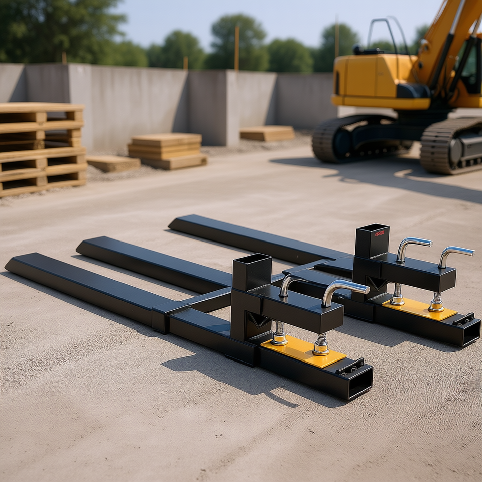 Fourches à palettes robustes de 60 pouces avec barre stabilisatrice réglable pour engins de construction