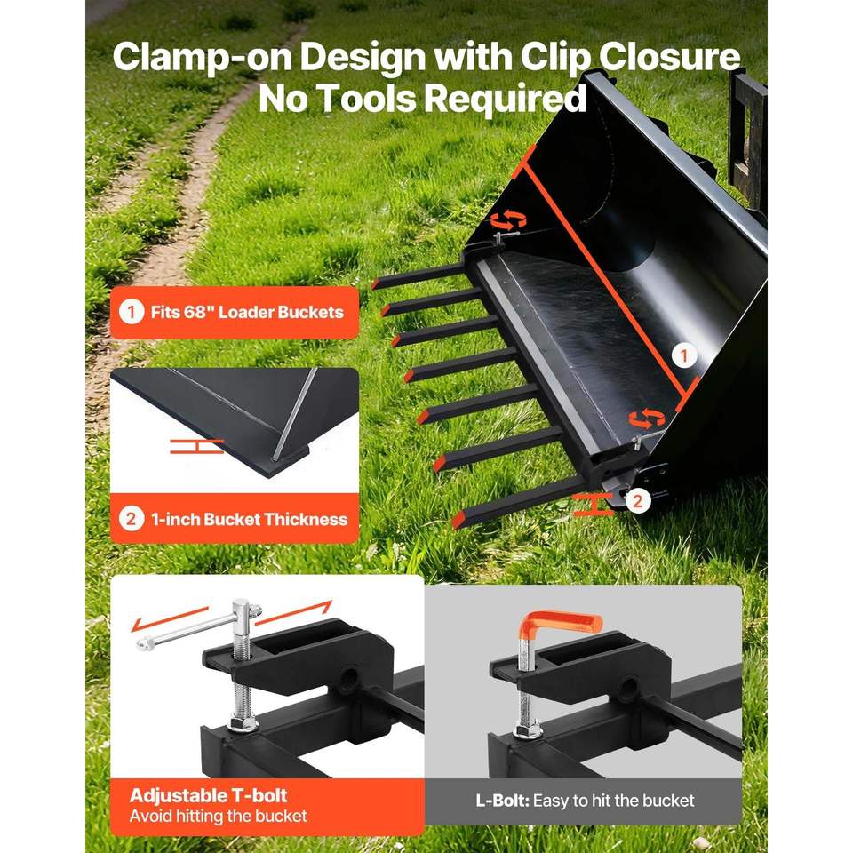 Fourches à palettes robustes, accessoires pour chargeurs de tracteurs, pinces de 68,5 pouces, godets à débris, accessoires à 7 fourches, machines de construction