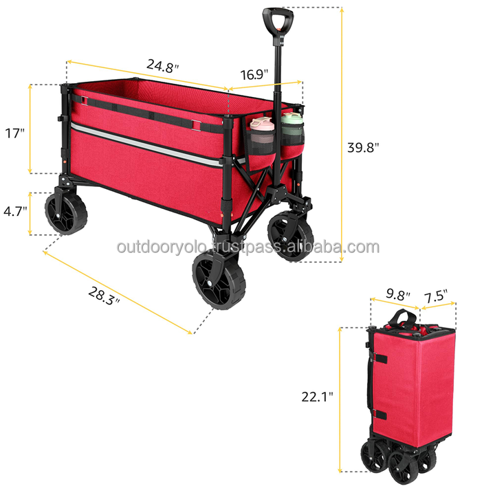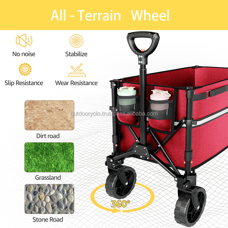 Chariot de plage pliable portable robuste chariot de camping de grande capacité chariot de chariot grandes roues conception pliable fonctionnelle OEM