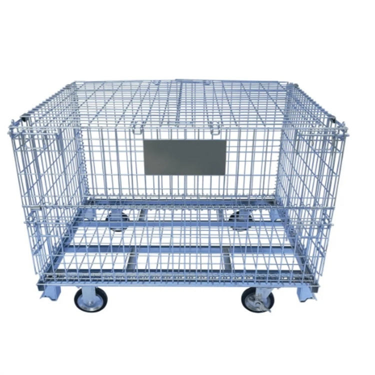 Conteneurs empilables de stockage de cage de grillage en vrac en métal rigide pliable démontable résistant