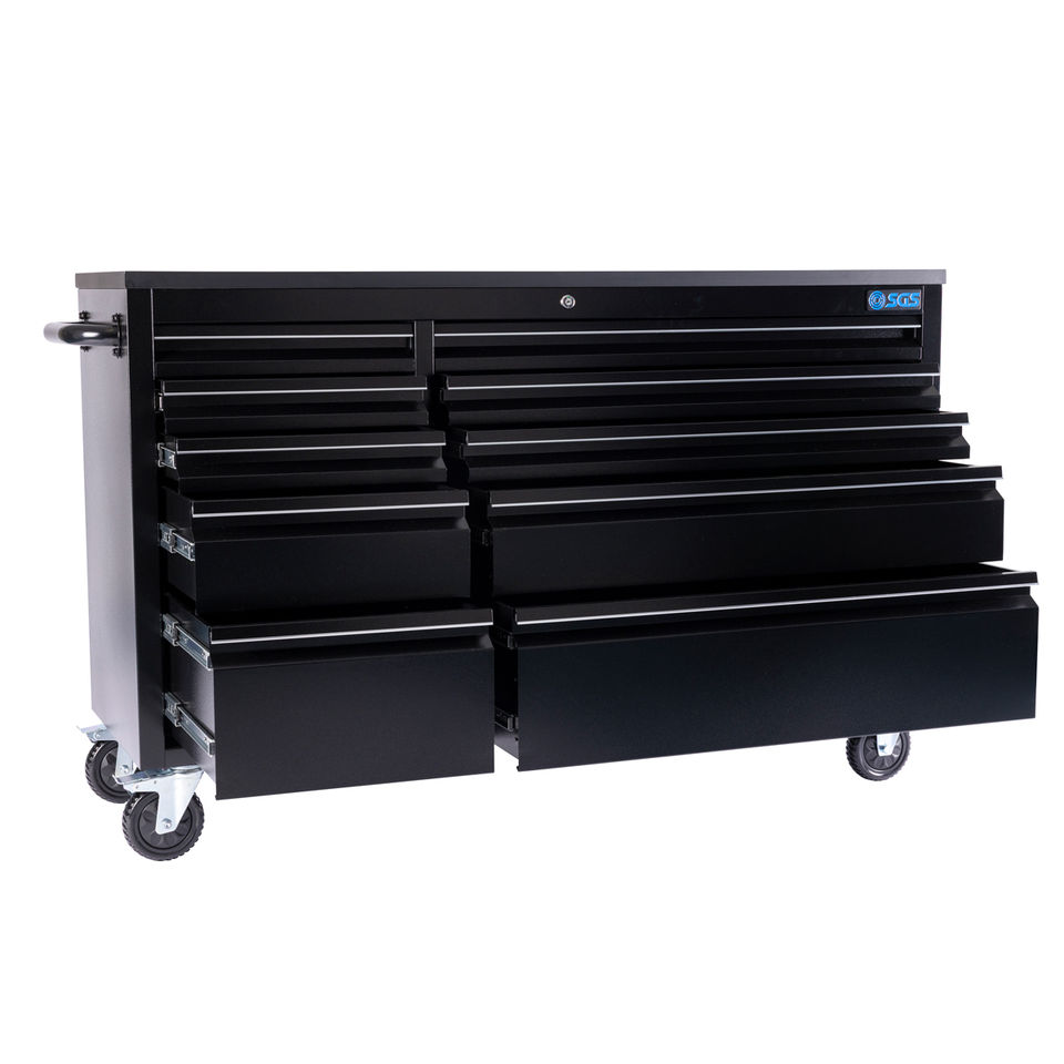 Armoire à outils roulante en acier inoxydable robuste de 56 pouces, plan de travail avec 10 tiroirs, dessus en bois, coffre à outils Craftsman, OEM/ODM/OBM