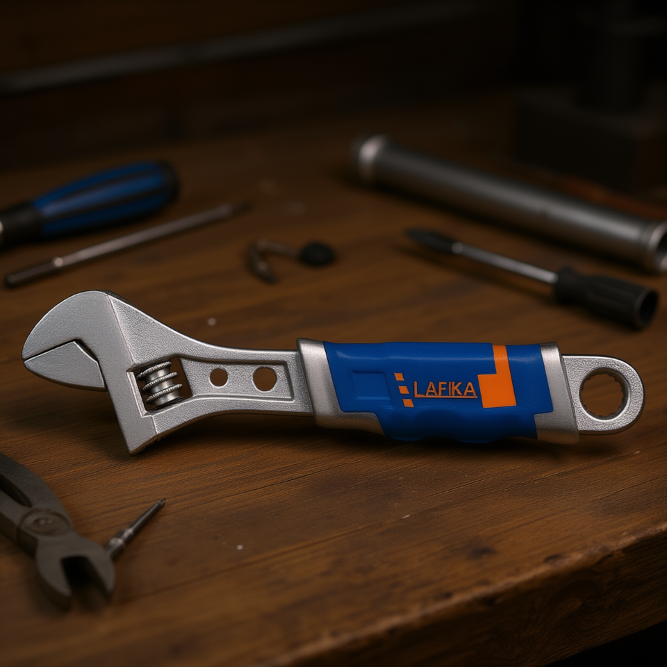 Clé à molette réglable Lafika en acier, métrique, à extrémité unique, de qualité DIY, avec mâchoire dentée et poignée antidérapante