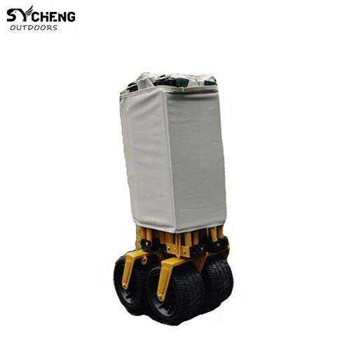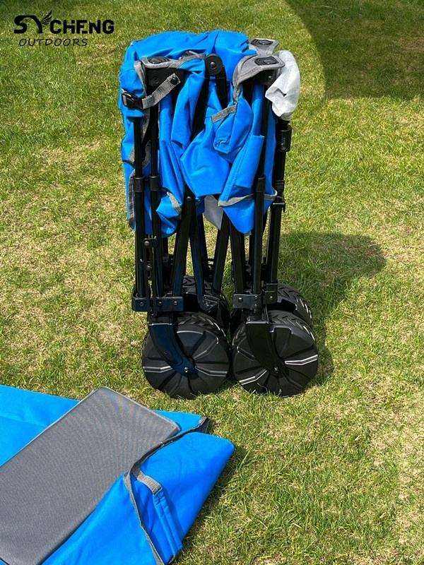 Chariot pliable à quatre roues en acier robuste avec grande capacité pour le camping en plein air, la randonnée et l'utilisation en jardin