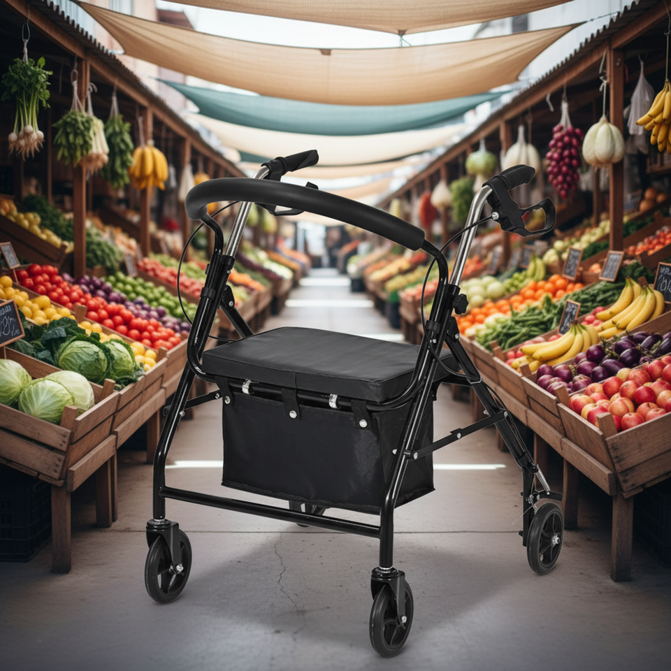 Déambulateur à cadre en acier robuste avec siège pour adultes, déambulateur à roulettes pour personnes âgées, déambulateur à roulettes avec siège, canne
