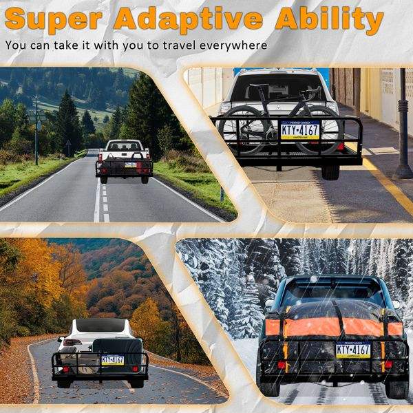 Porte-bagages robuste en acier pour attelage de remorque, capacité 500 lb, 60 x 24 x 14 pouces, pliable