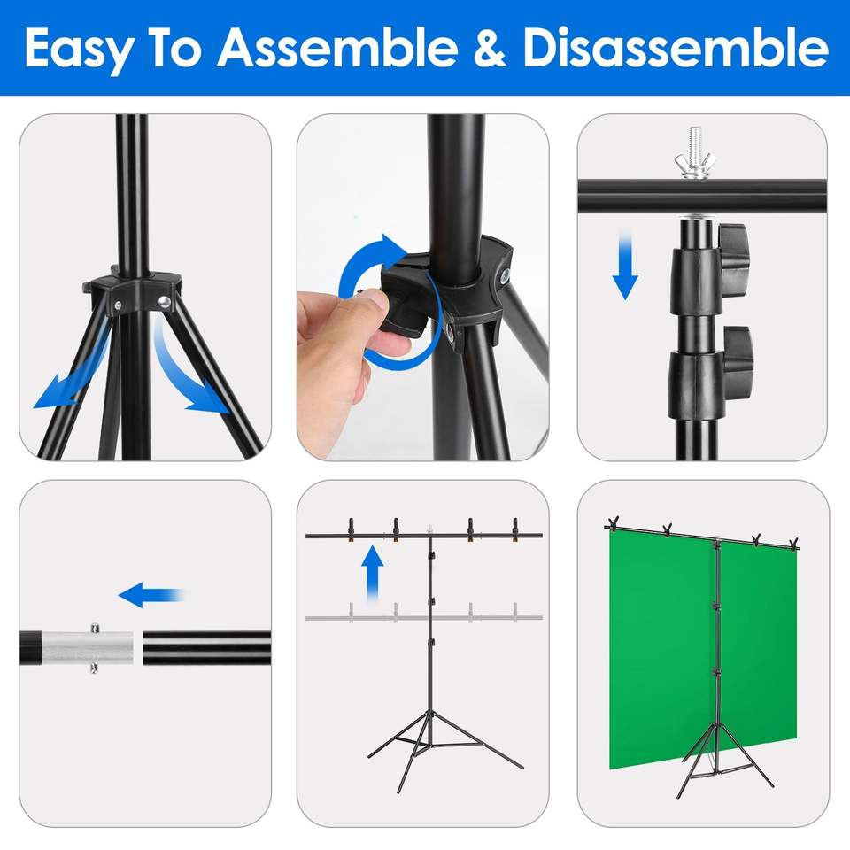 Support de fond photo/vidéo robuste en forme de T, réglable, 6,5 à 8,5 pieds, avec 6 ressorts