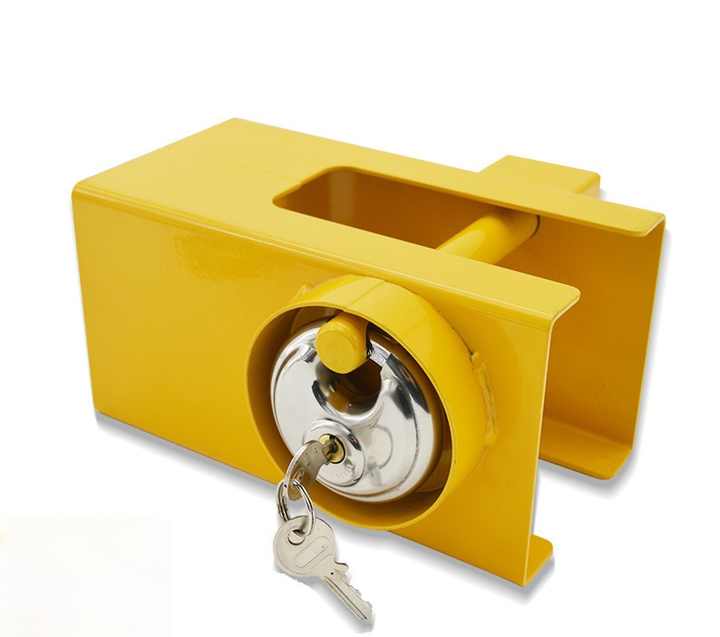 Verrou de remorquage en aluminium robuste - Cadenas jaune haute sécurité pour remorquage de caravane et de remorque