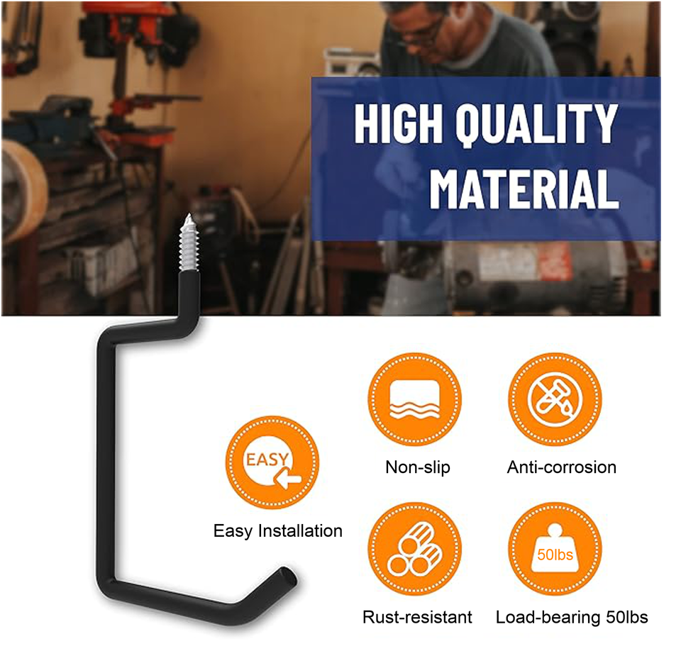 Crochet de Garage mural robuste monté au plafond outil enduit de PVC organiser le crochet mural de stockage pour la chaise d'échelle de vélo de jardin de Garage