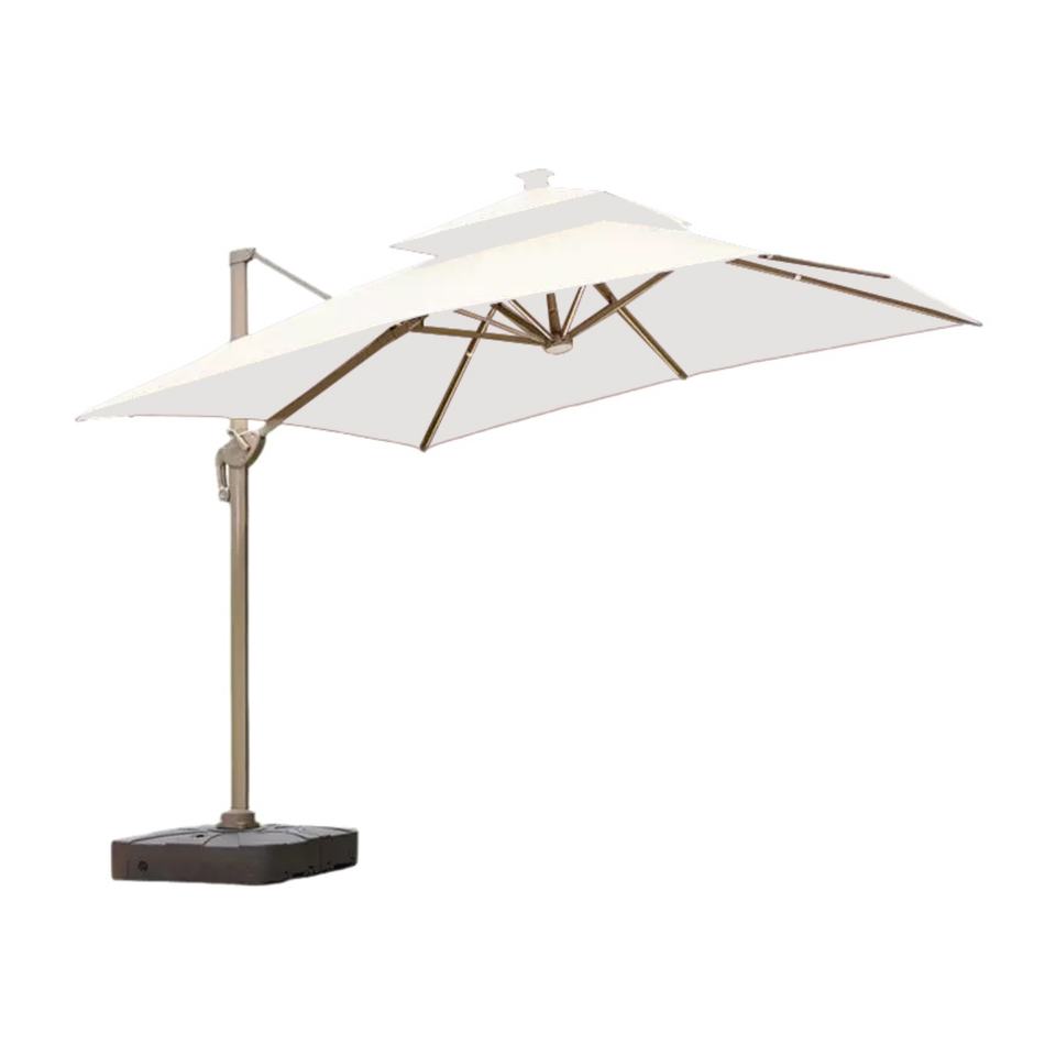 Parasol de piscine robuste résistant aux intempéries avec structure en fer, éclairage solaire LED manuel, diamètre 140 cm, toutes saisons, protection UV pour piscine extérieure