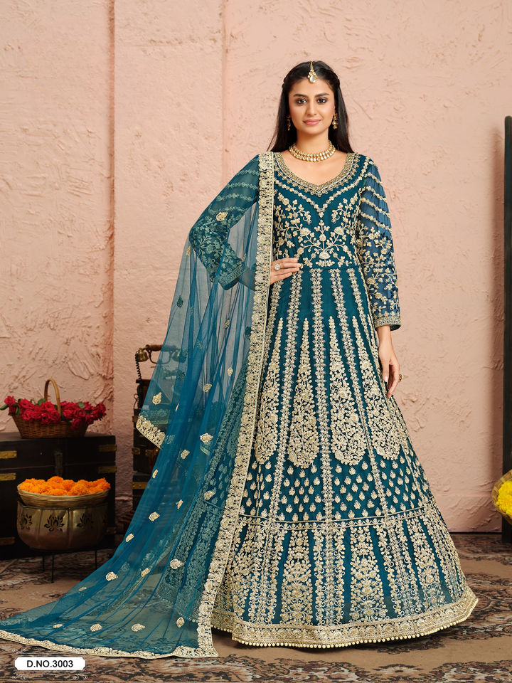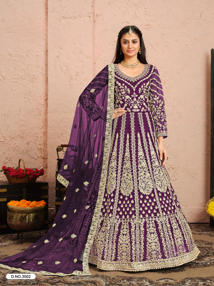 Lourd brodé Anarkali Salwar Kameez Collection filet avant arrière pour les mariages fête étage-longueur indien pakistanais vêtements