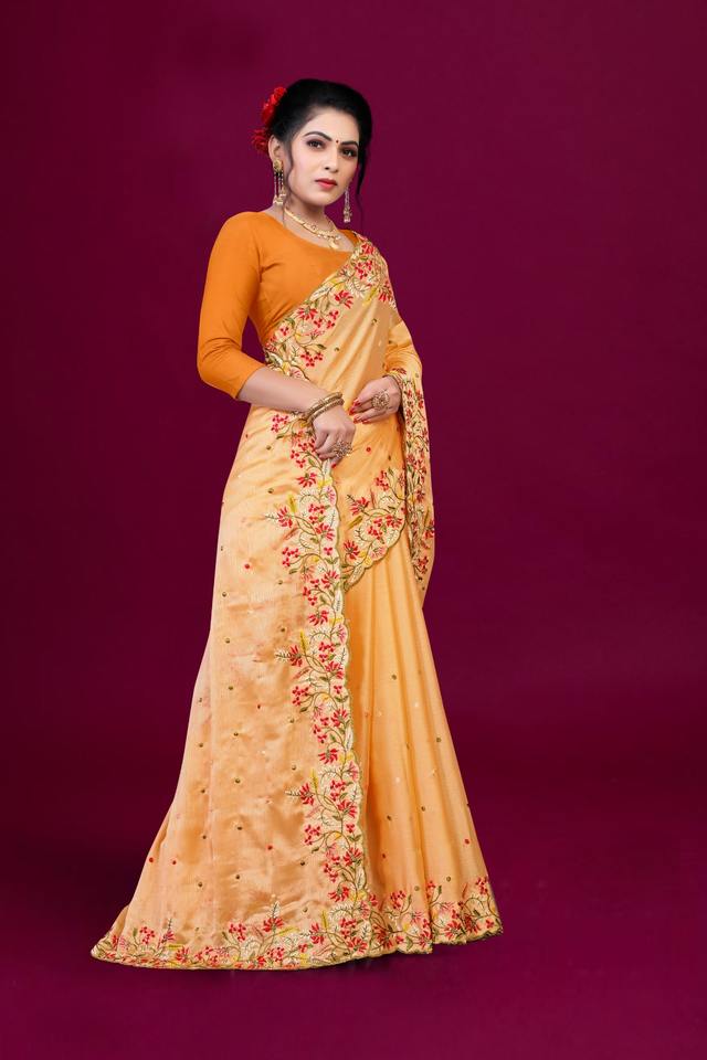 Saree avec travail de la pierre Broderie lourde Travail multi-fils