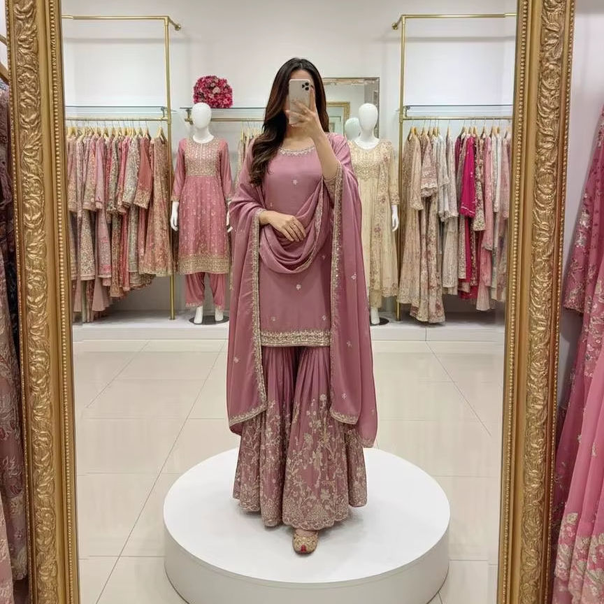 Robe de soirée à broderies lourdes et sequins, style moderne, avec Gharara et Dupatta, pour toutes les saisons