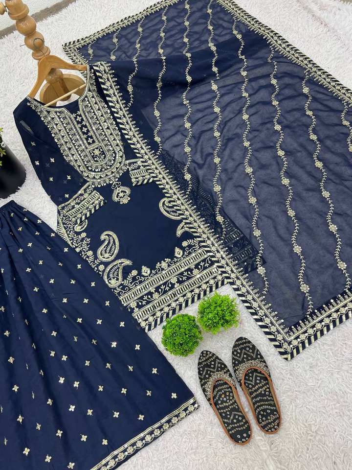 Ensemble de travail de séquence de broderie lourde Kurta-Sharara & Dupatta Collection de prêt-à-porter entièrement cousue