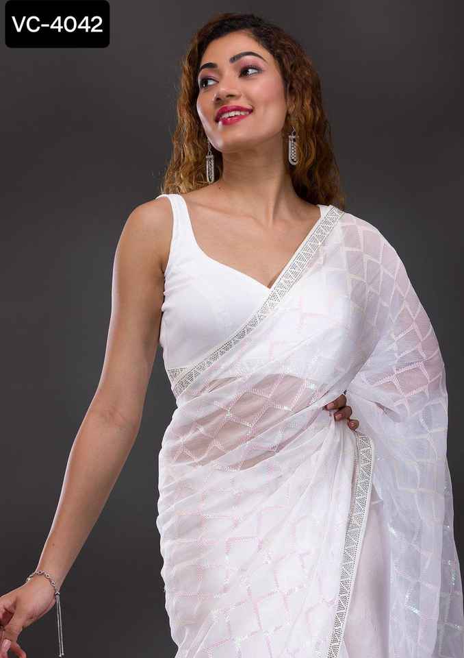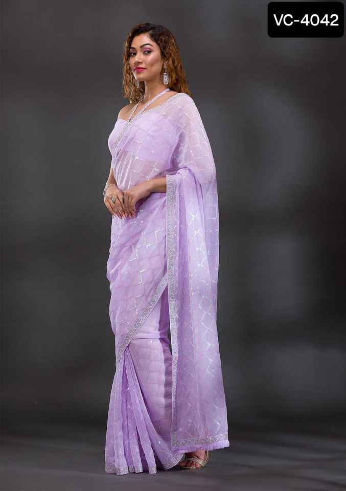 Sari en Georgette à Broderies Lourdes, Style Indien, Travaux de Broderie de Haute Qualité, Idéal pour les Fêtes et la Saison des Festivals, Sari de Haute Qualité pour Femmes