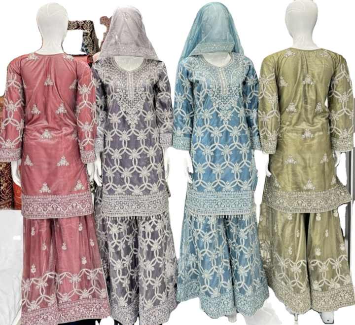 Nom du produit:Costume Gharara pakistanais lourd à la framboise