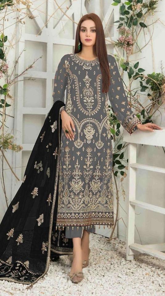 Robe de travail de séquence de broderie de fausse georgette lourde avec fond en soie Stanton velours Dupatta Collection de vêtements pakistanais indiens