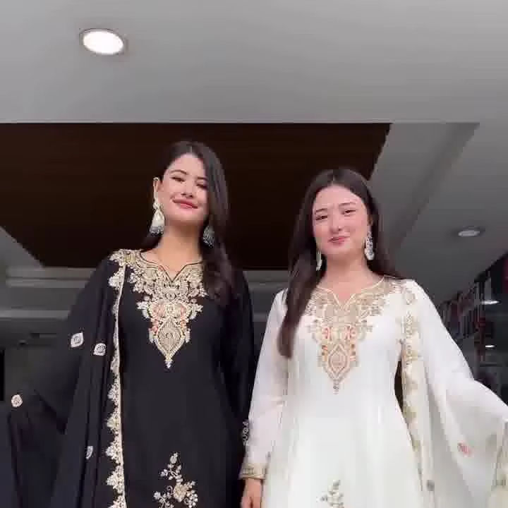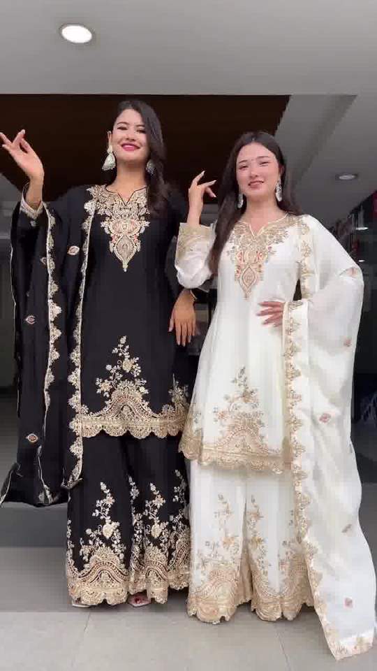 Ensemble Palazzo en Faux Georgette Lourd Brodé pour Soirée, avec Haut, Pantalon Palazzo et Dupatta en Faux Georgette Ornés de Broderies de Fil et de Paillettes