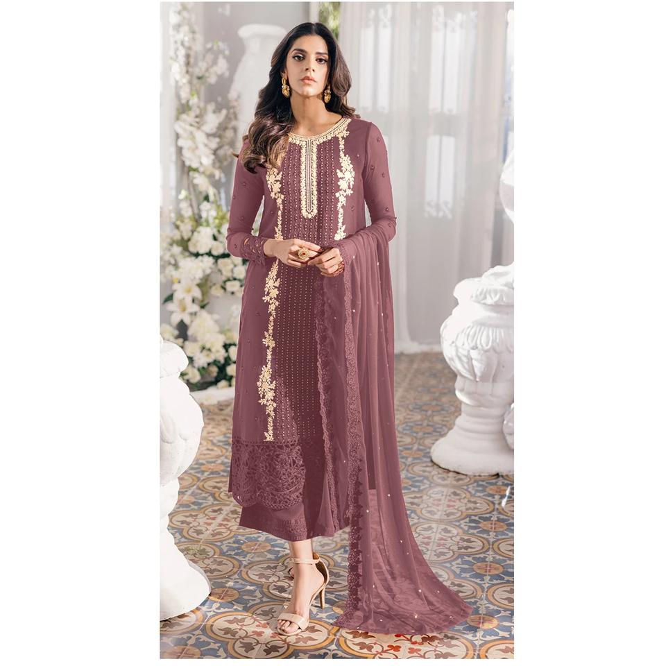 Fausse Georgette lourde avec broderie lourde et travail de séquence Costume Salwar pakistanais avec Dupatta pour l'exportation depuis l'Inde