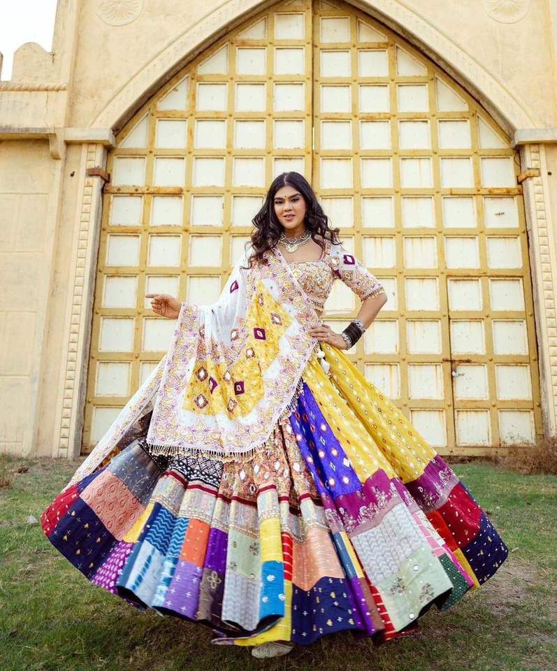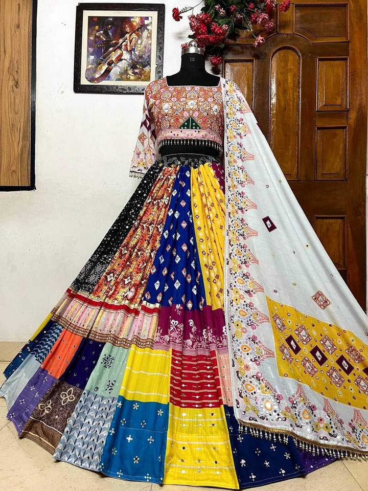 Nom du produit:Mousseline De Coton Véritable Miroir Travail Lehenga Choli Et Dupatta