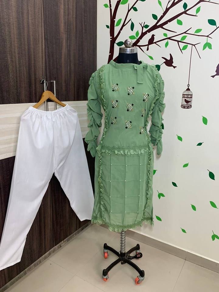 Renard lourd Georgette Designer Dentelle Perles Travail Kurti Belle Tenue De Mariage Traditionnelle Indienne Fabriquée À La Main Longue Salwar Kameez