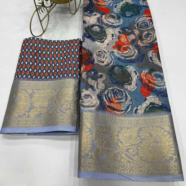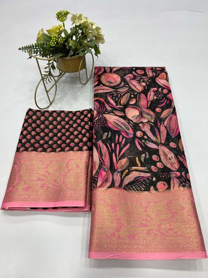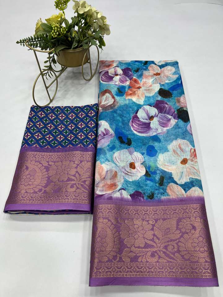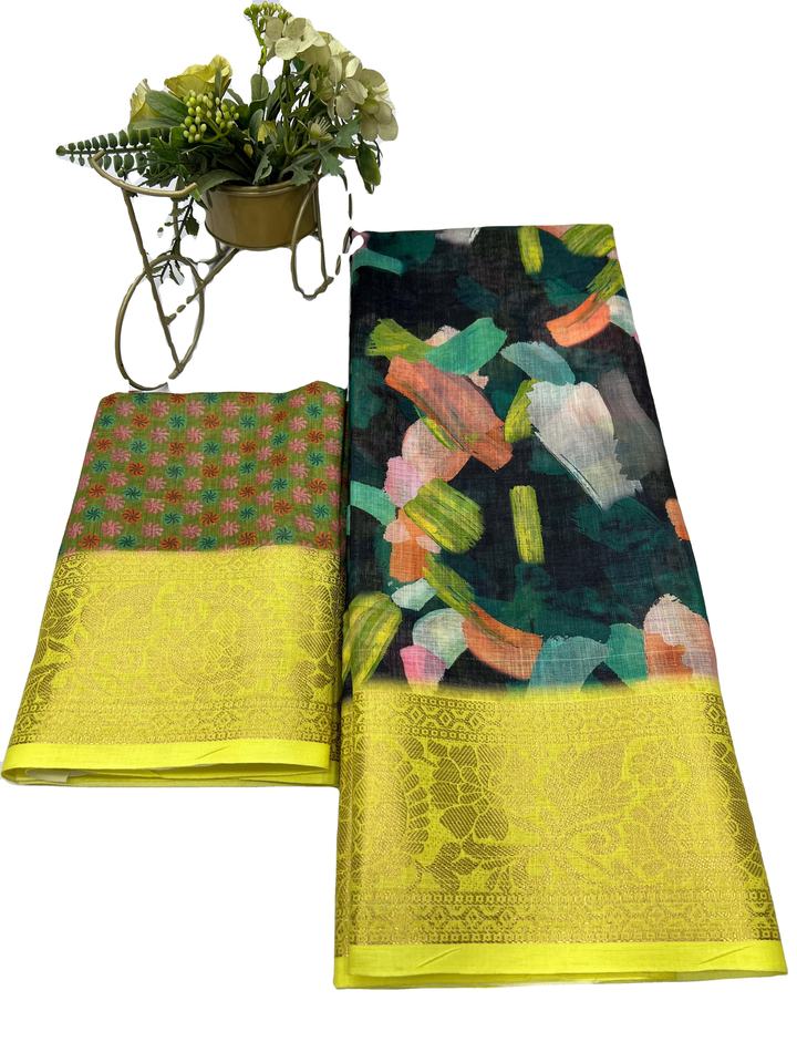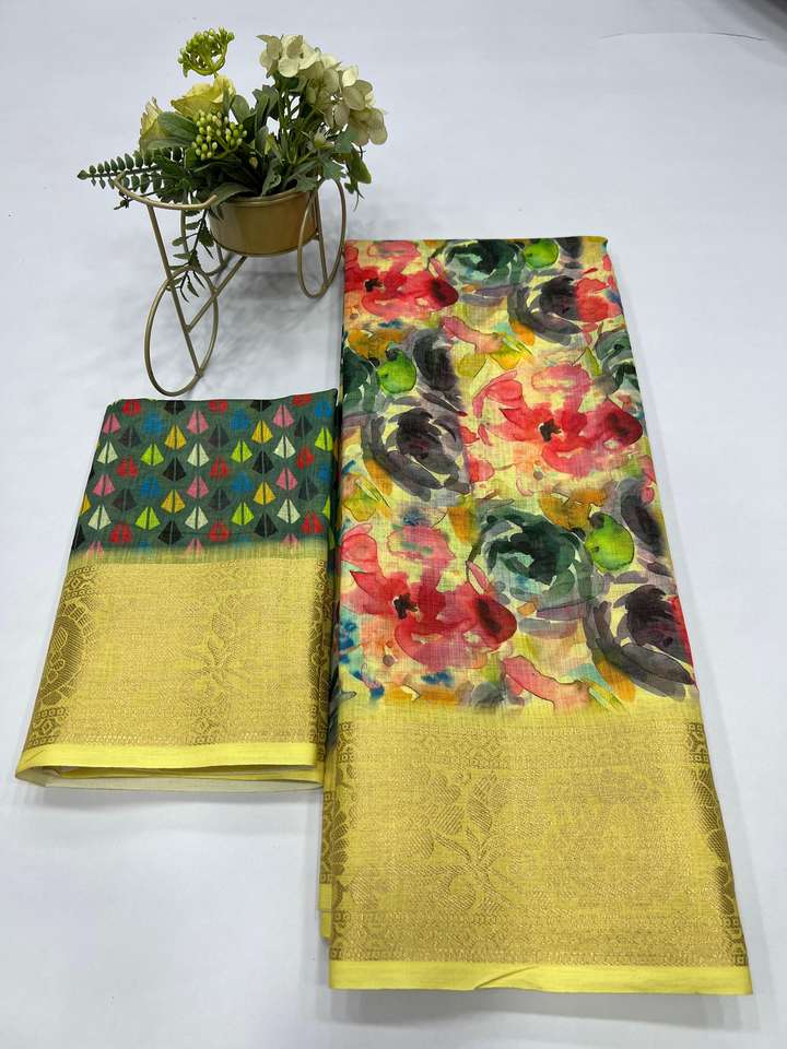 Collection de saris imprimés numériques en lin lourd pour adultes vêtements indiens et pakistanais avec bordure en jacquard doré