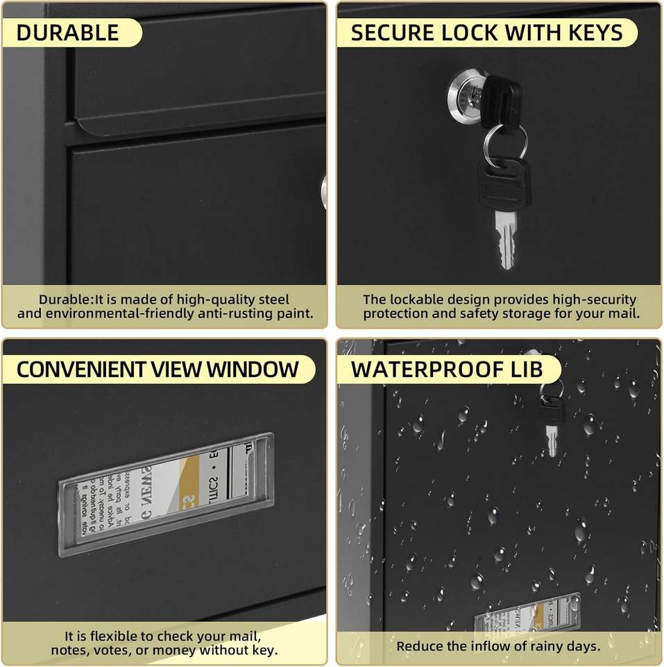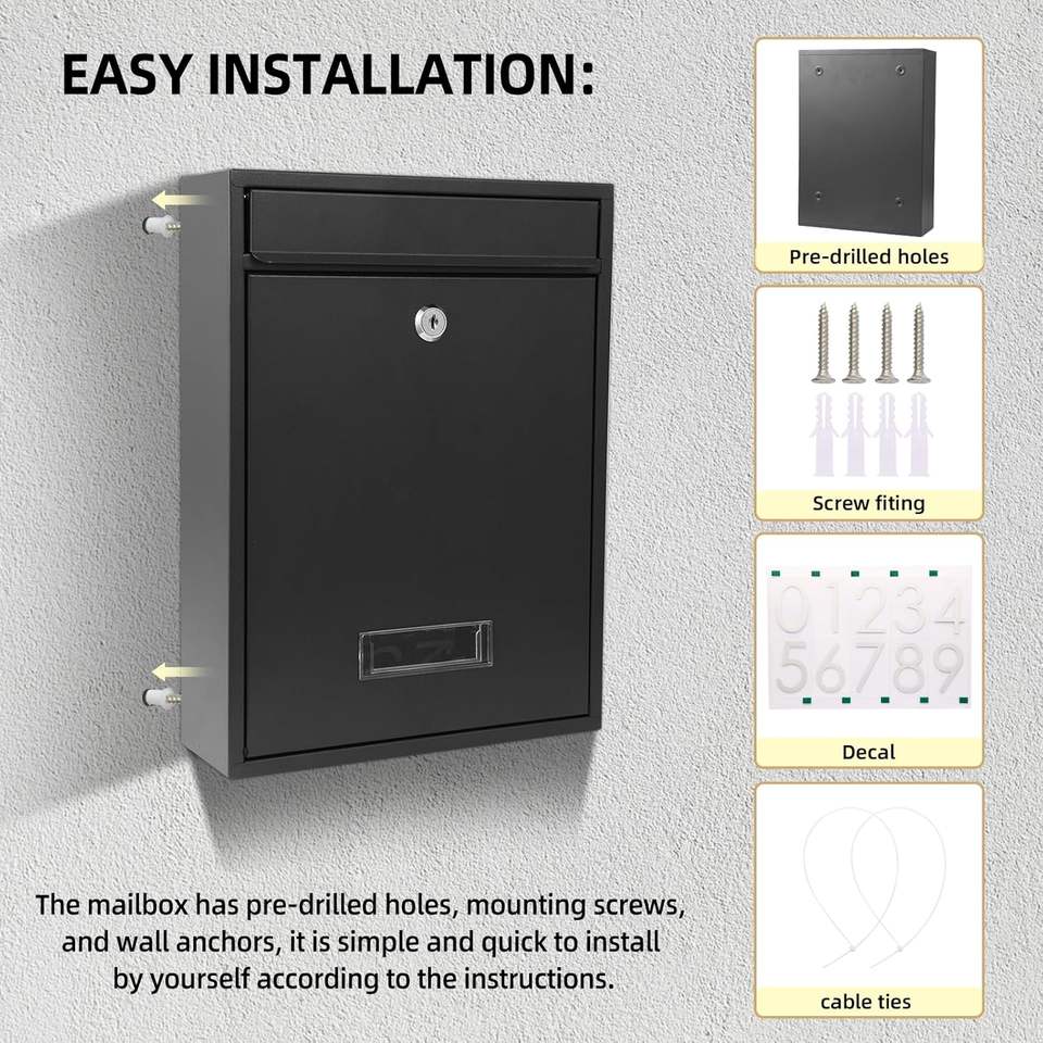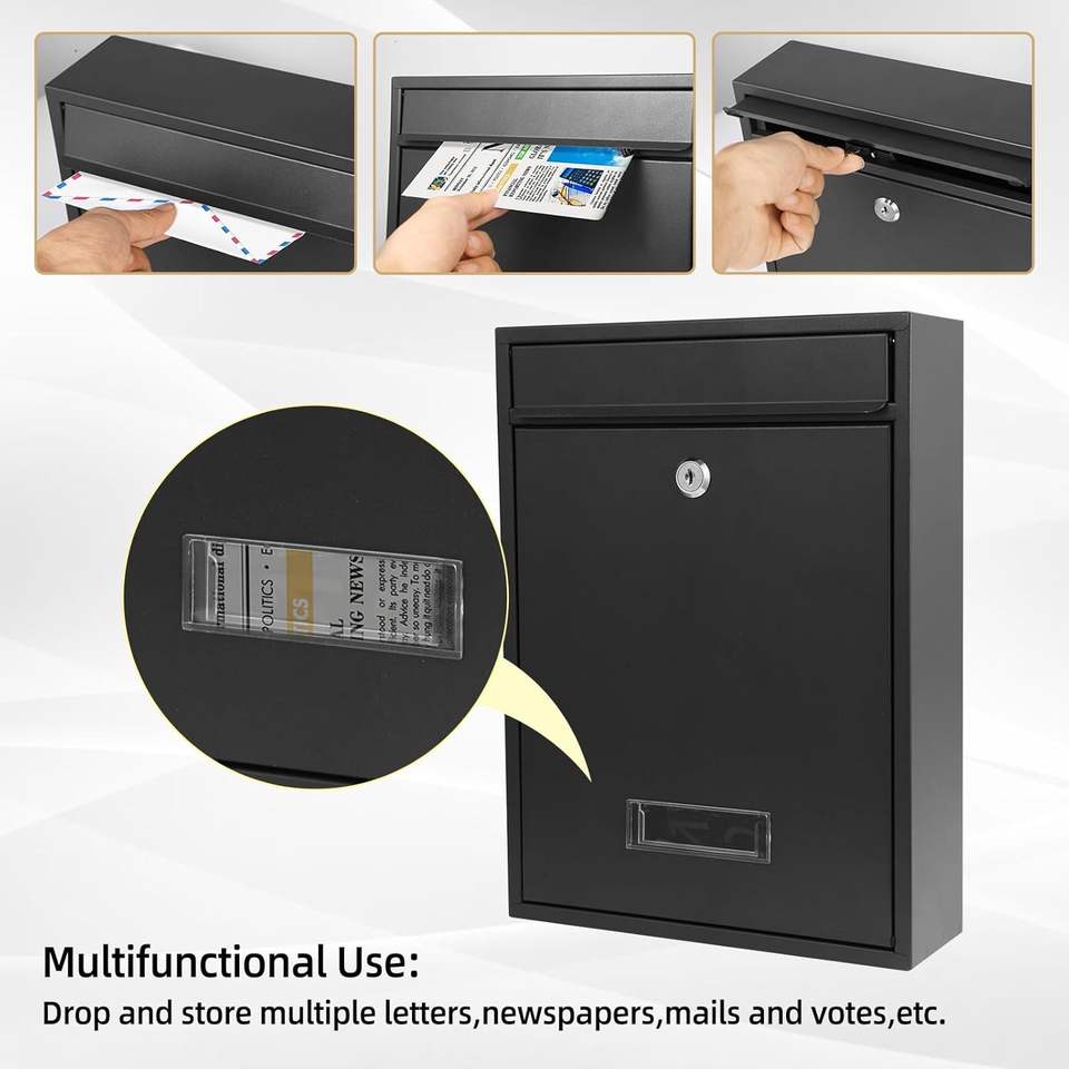 Boîte aux lettres moderne en métal robuste pour entrées de bureaux avec application de fixation murale, antirouille et durable, taille et couleur personnalisables