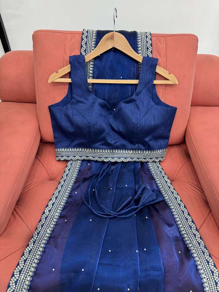 Nom du produit:Fil de soie d'organza et Saree de travail de séquence avec le chemisier