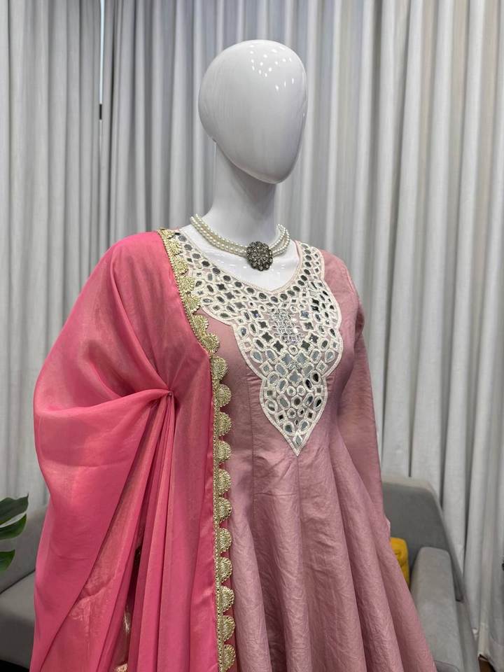 Palazzo Cosmos en soie avec travail de miroirs et dupatta