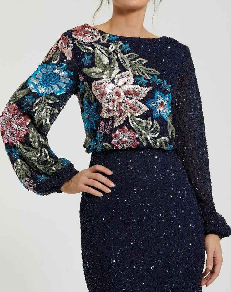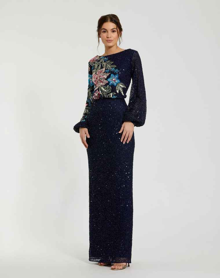 Bustier sexy à manches longues et à sequins lourds, orné à la main, taille naturelle, robe de soirée élégante pour femmes