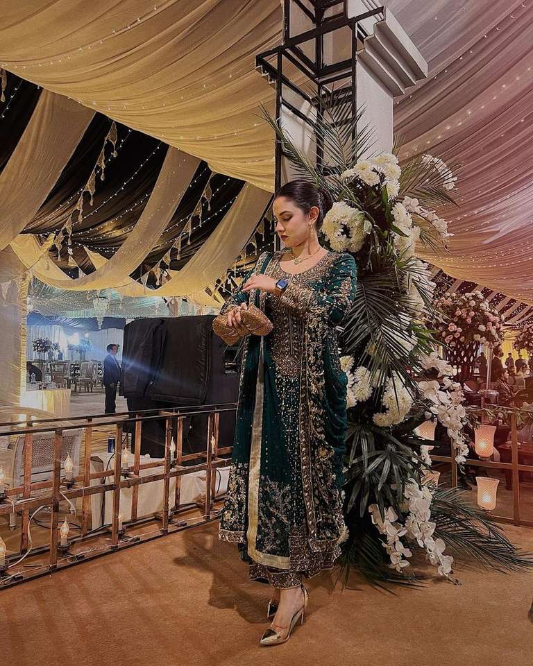 Ensemble haut et pantalon en soie avec broderie de sequins et de fil, et dupatta