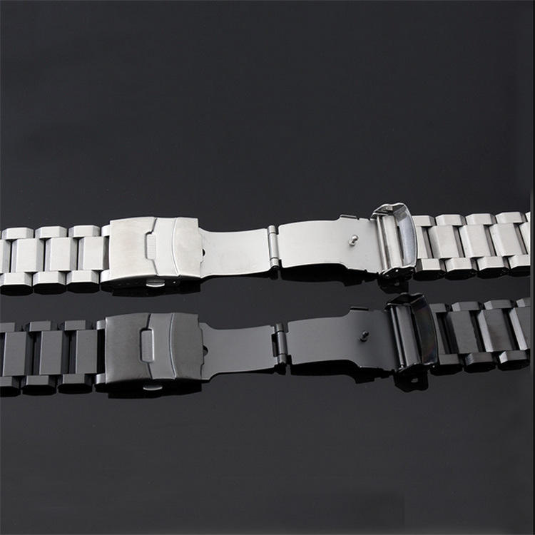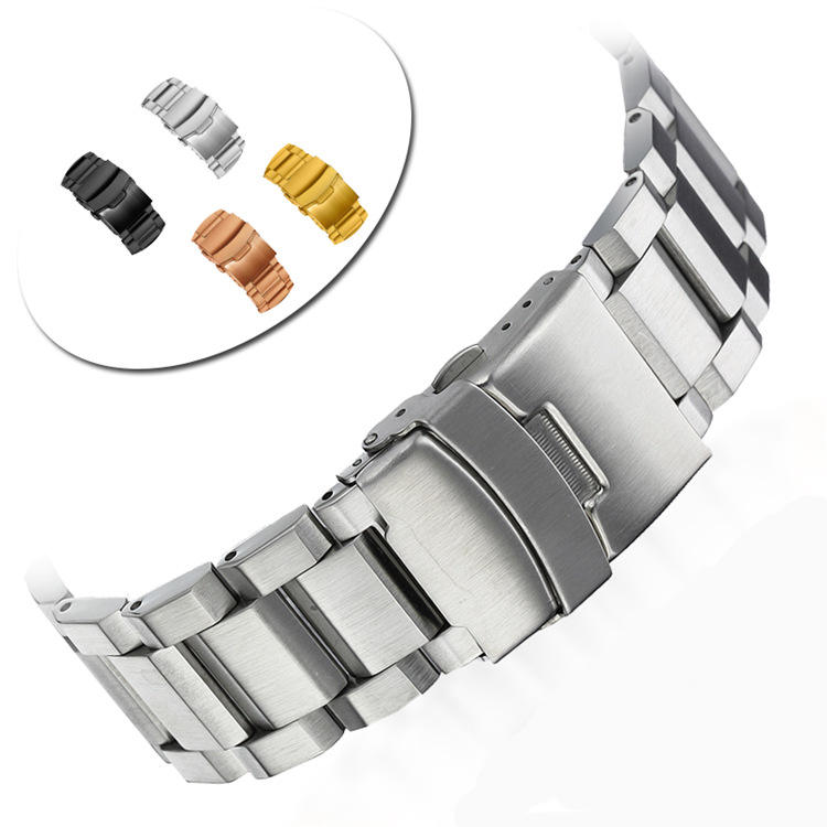 Bracelet en acier inoxydable lourd pour Smartwatch respirant Double boucle d'assurance solide trapézoïdal trois perles pour Samsung Casio