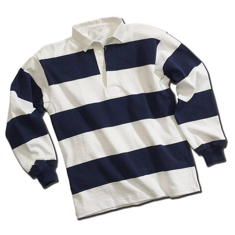 Maillots de rugby en coton épais et lourd, logo brodé personnalisé, polos de rugby classiques à manches longues, vêtements d'équipe, maillot à rayures old school