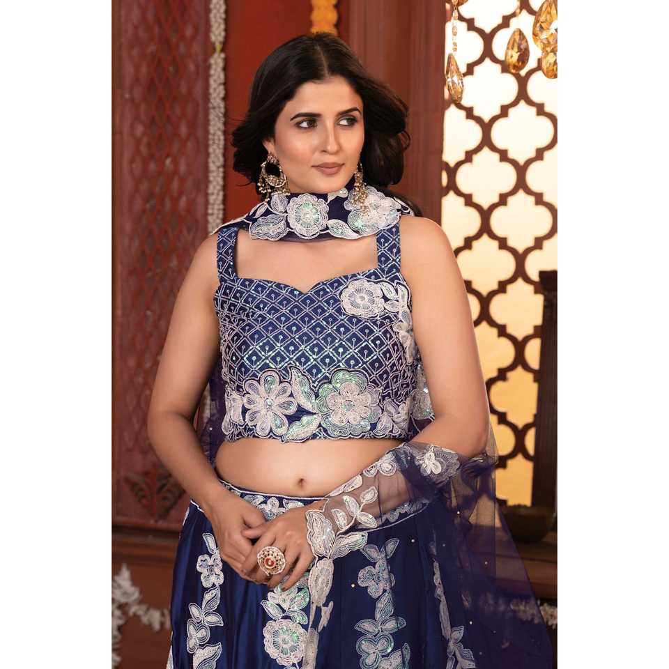 Robe de soirée en broderie lourde, Lehenga Choli à porter pour les fêtes, avec un design complexe
