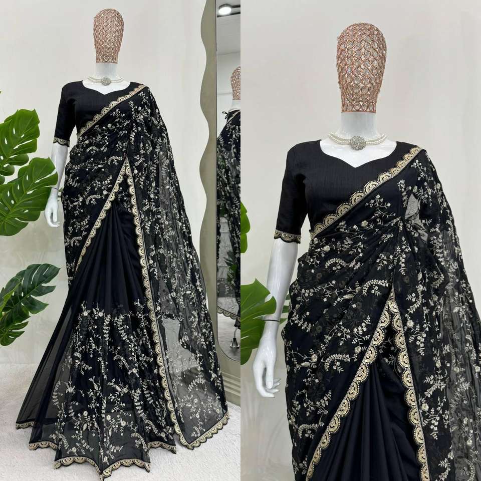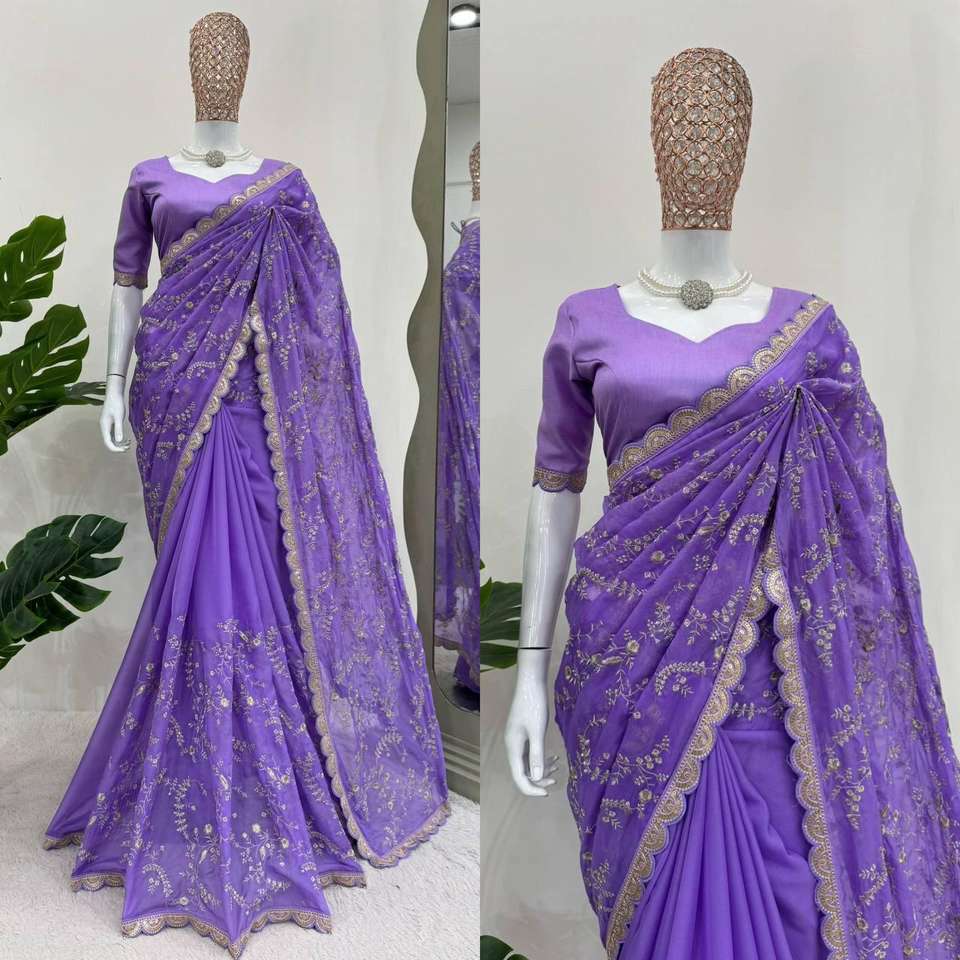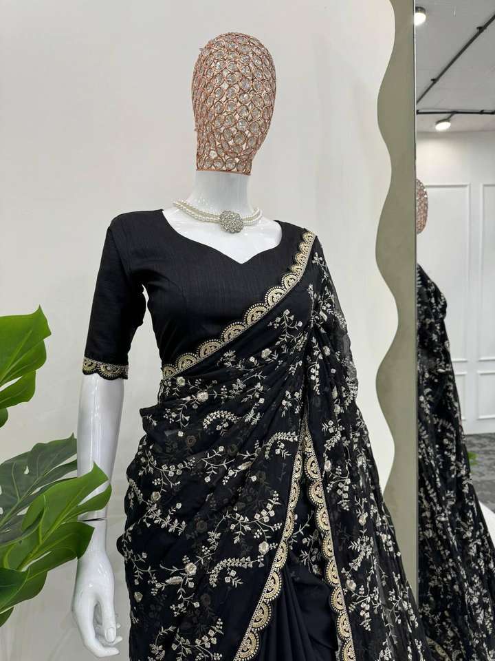 Tibby Silk Coding With Sequence Work Saree With Blouse