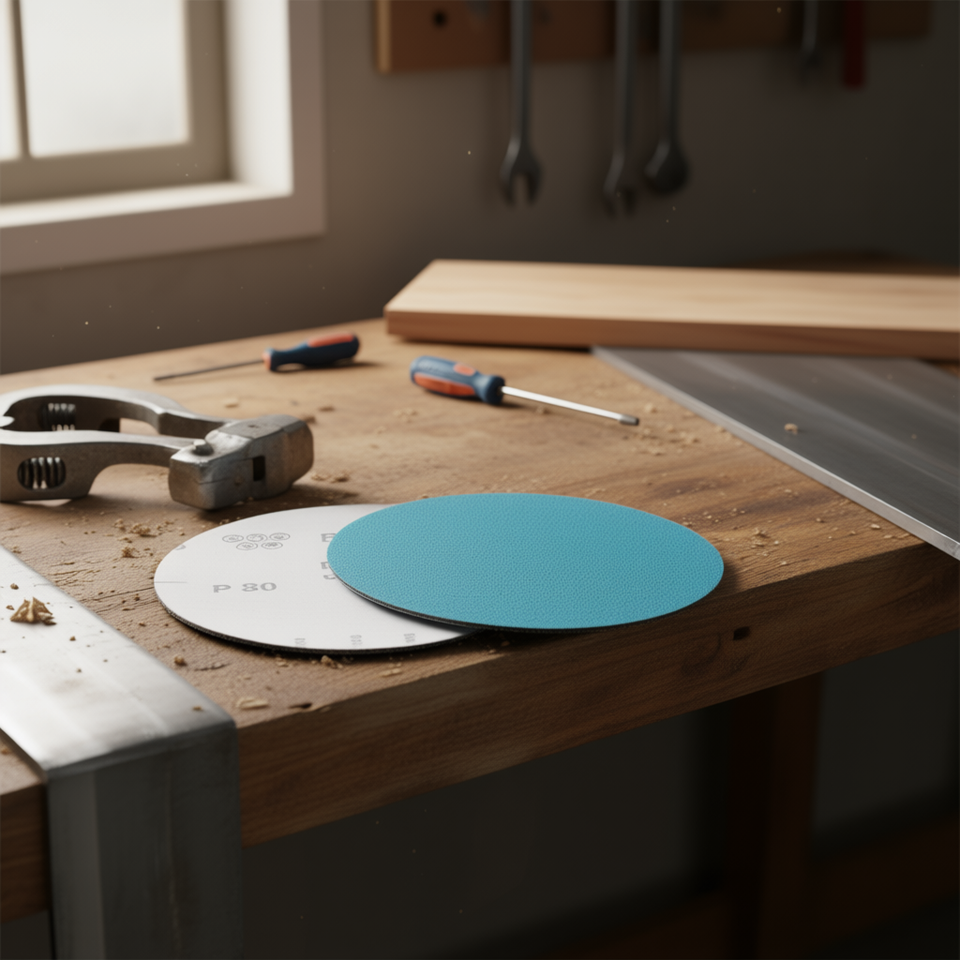 Disques abrasifs à velcro robustes P80 bleus 150 mm pour le polissage du bois et du métal