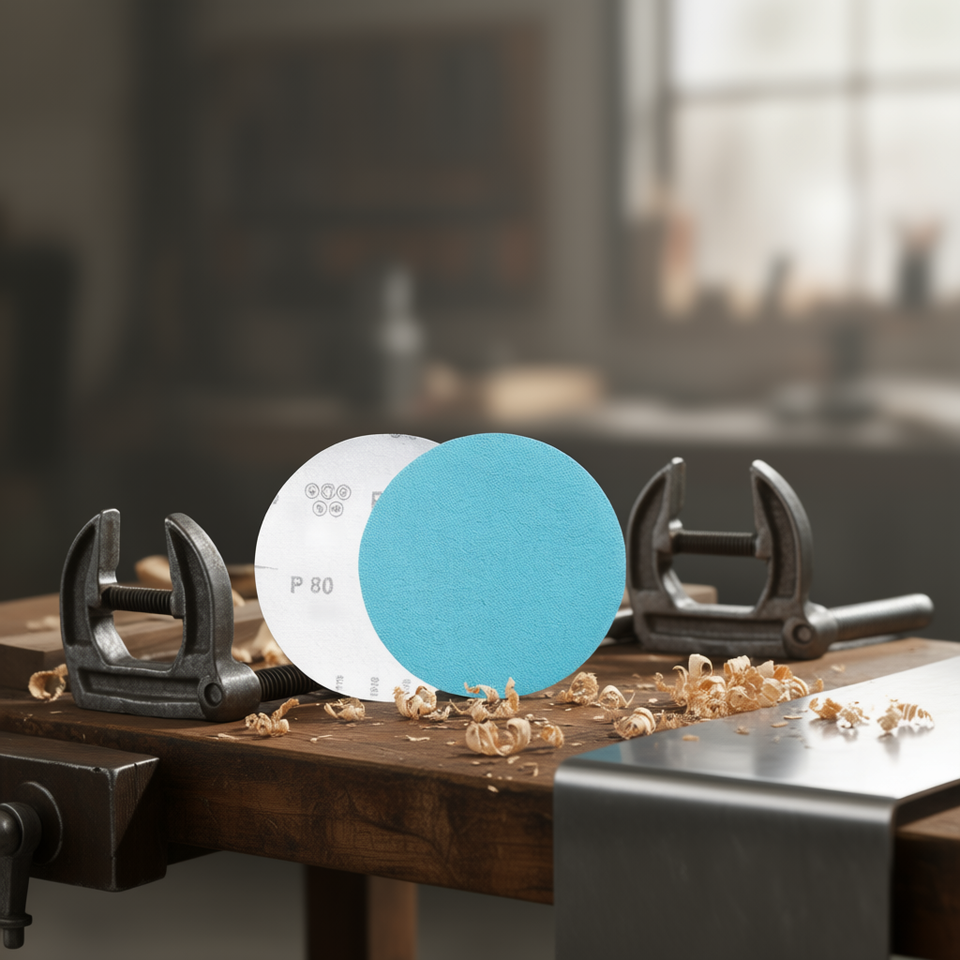 Disques abrasifs à velcro robustes P80 bleus 150 mm pour le polissage du bois et du métal
