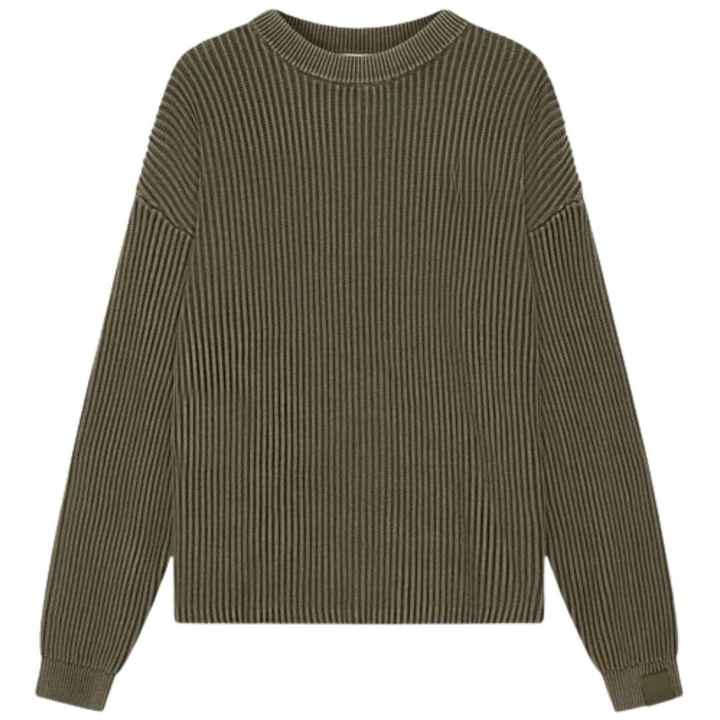 Pull ras du cou côtelé kaki délavé pour homme – Style décontracté avec détails côtelés