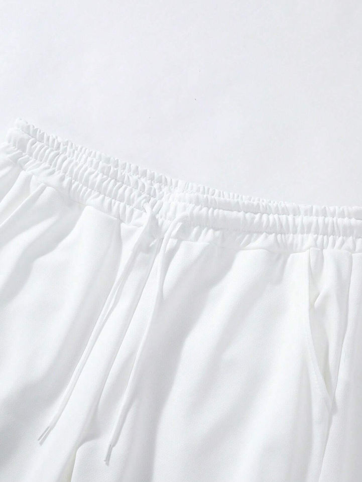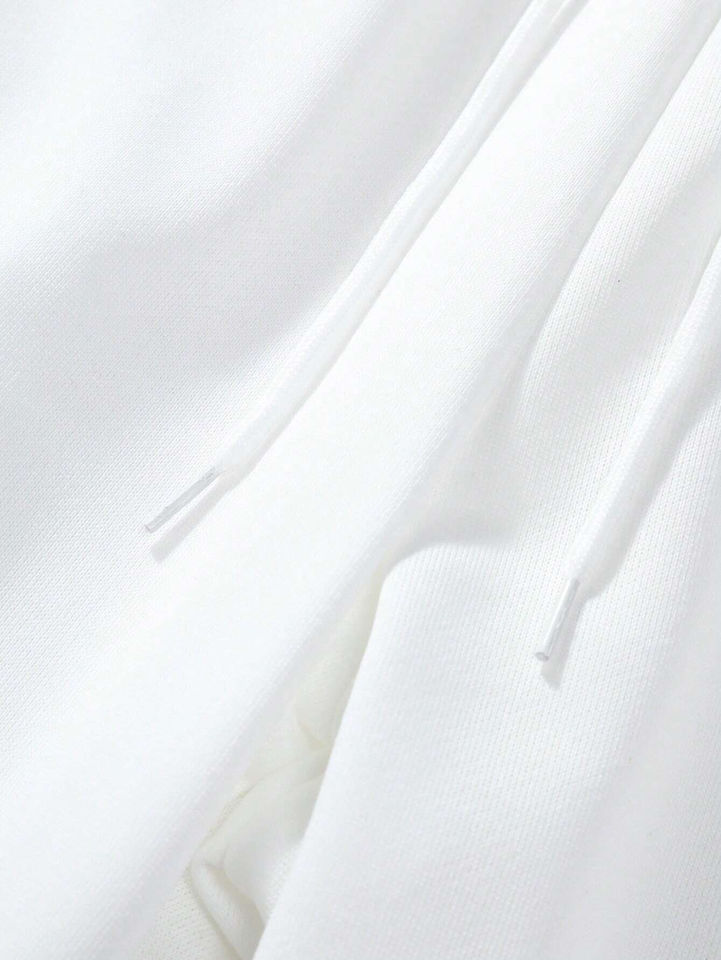 Survêtements blancs en molleton de coton épais à épaules tombantes surdimensionnés à capuche et pantalons de survêtement pour hommes