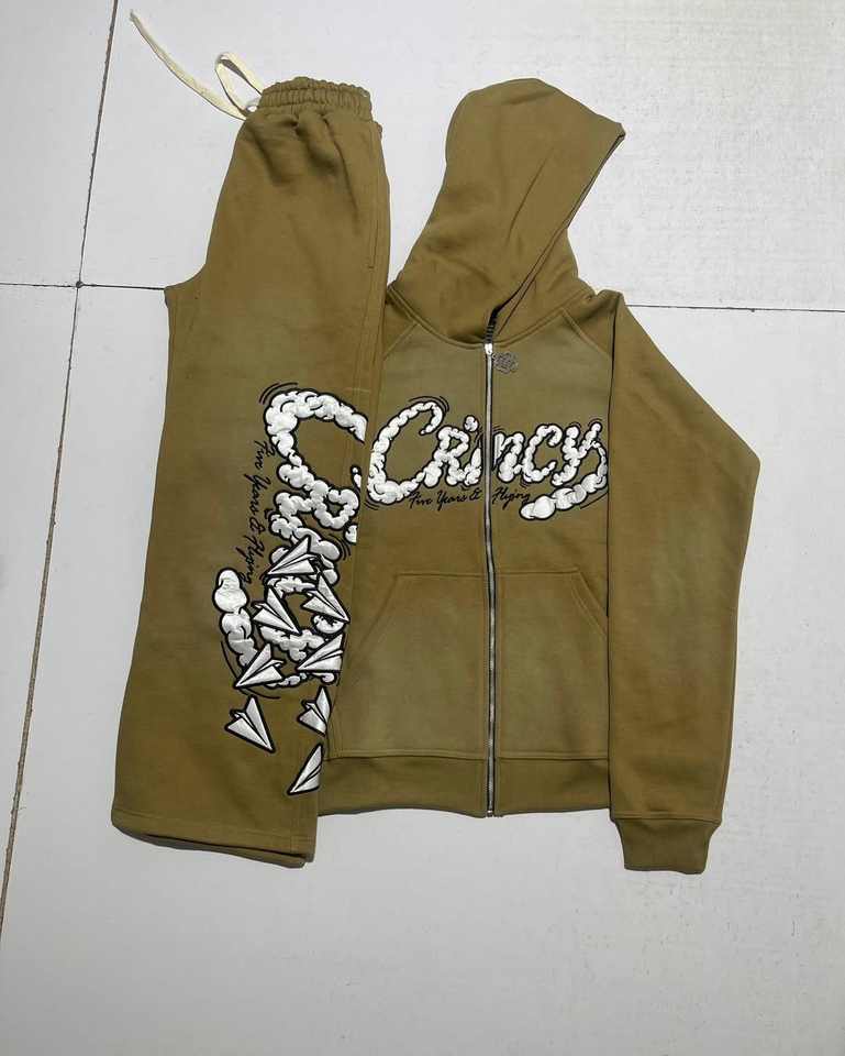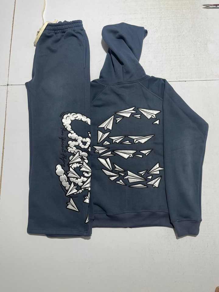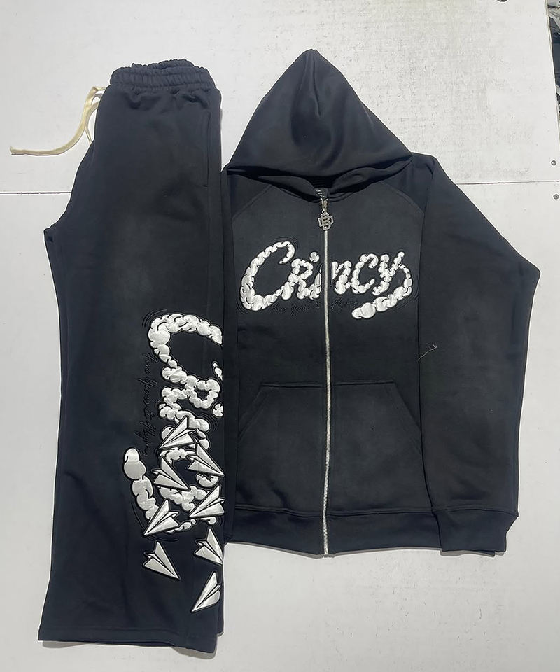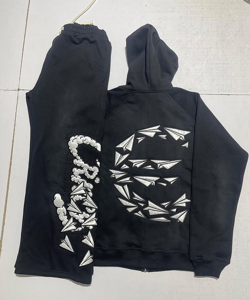 Ensemble de survêtement streetwear pour homme, coupe ample, en polaire d'hiver, avec broderie épaisse, comprenant un sweat à capuche et un pantalon de survêtement, fermeture éclair, séchage rapide