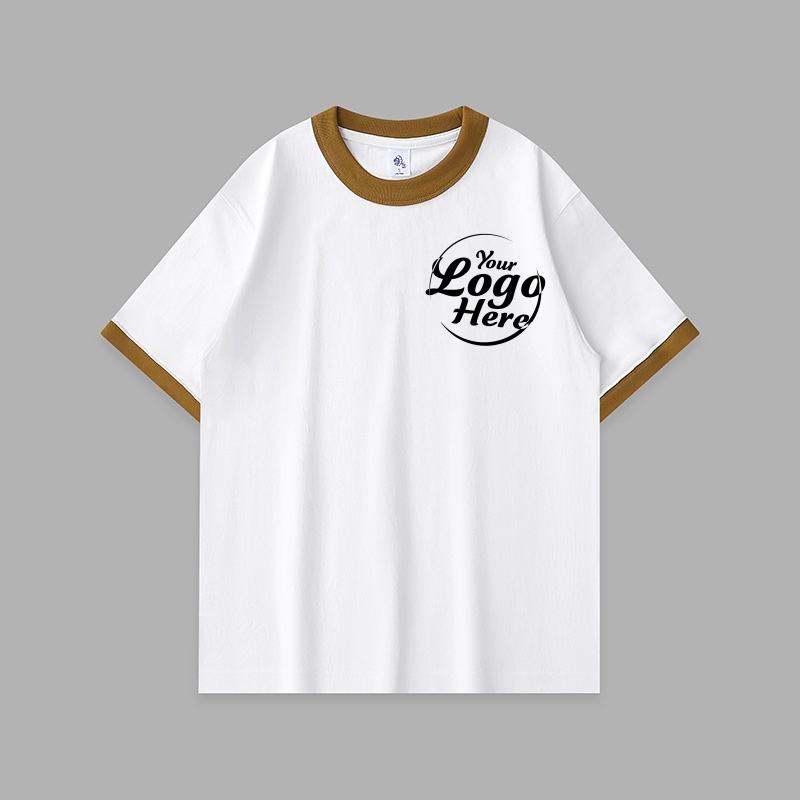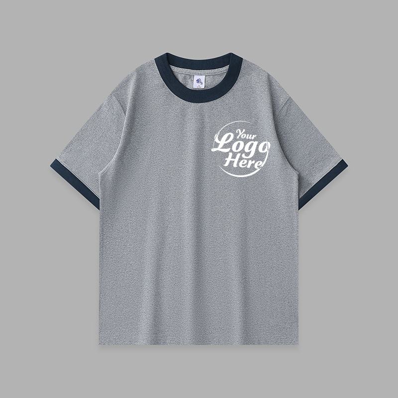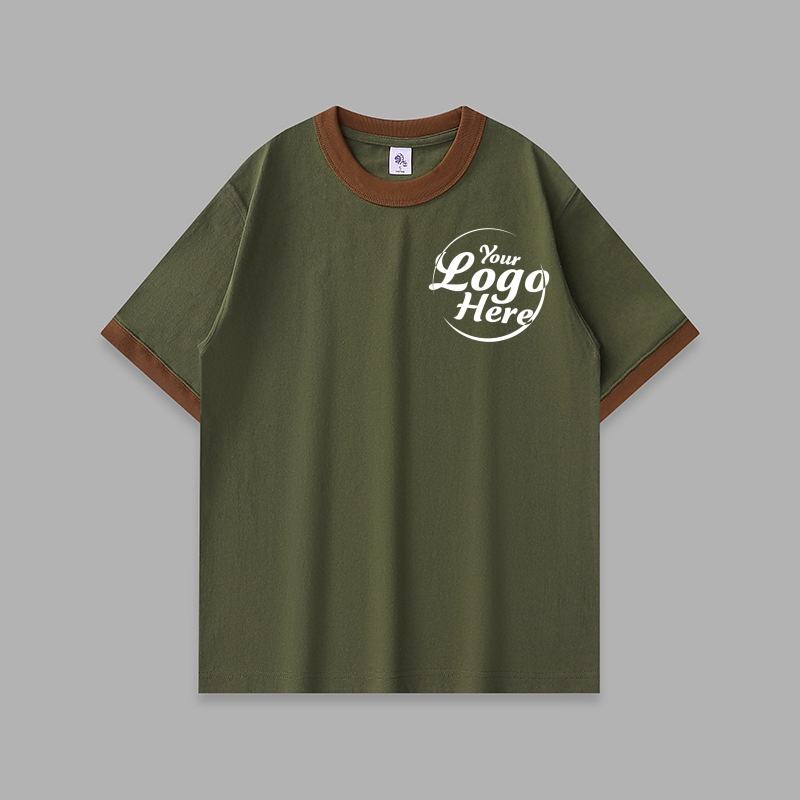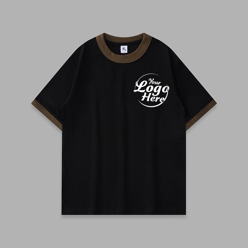 T-shirt de style collège lourd 100% pur coton coupe ample col rond avec design d'épissage contrasté